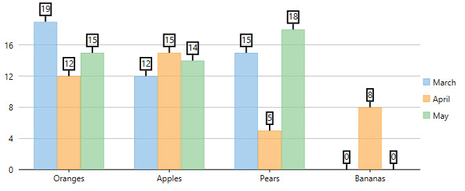 FlexChart provides a number of options to format data labels the way you want. You can set and style borders of data labels, connect them with their corresponding data points, and customize the way data labels appear.