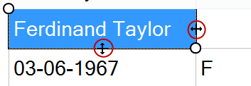 The following figure shows the difference between the resizing mark based on the value set in the Cell.ResizeMode property.