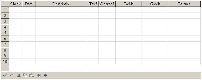 Copy Code// Add text to column heading. FpSpread1.ColumnHeader.Cells[0, 0].Text = "Check #"; FpSpread1.ColumnHeader.Cells[0, 1].Text = "Date"; FpSpread1.ColumnHeader.Cells[0, 2].Text = "Description"; FpSpread1.ColumnHeader.Cells[0, 3].Text = "Tax?"; FpSpread1.ColumnHeader.Cells[0, 4].Text = "Cleared?"; FpSpread1.ColumnHeader.Cells[0, 5].Text = "Debit"; FpSpread1.ColumnHeader.Cells[0, 6].Text = "Credit"; FpSpread1.ColumnHeader.Cells[0, 7].Text = "Balance";