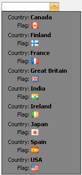 The HtmlPattern used above is set to the following: <table><tr><td>Country:</td><td><b>{Text}</b></td></tr><tr><td align="right">Flag:</td><td><img src='{Text}'></td></tr></table>