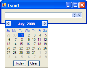 Now when you open the C1DateEdit dropdown menu, the "Today" and "Clear" buttons are set.