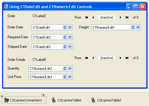 Now we will set up controls for numeric input. The C1NumericEdit1 control is bound to the Freight field. To set up the C1NumericEdit1 control: