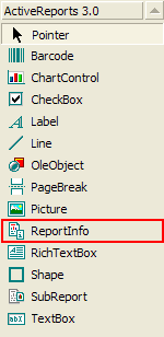 - New ReportInfo control can be dropped from the ActiveReports 3.0 toolbox onto any section of the report, allowing you to easily display report information such as "page N of M" and/or report run date in multiple formats through manipulation of the ReportInfo.FormatString property.
