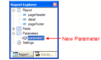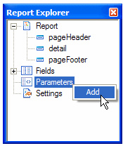 - In the Report Explorer, right-click on the Parameters node.
