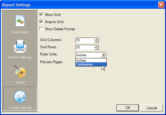 In ActiveReports, ruler measurements can be changed from inches to centimeters and centimeters to inches at both design time and run time.