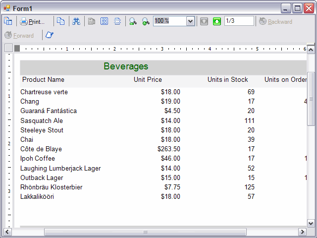 'Visual Basic Private Sub Form1_Load(ByVal sender As System.Object, ByVal e As System.EventArgs) _ Handles MyBase.Load Dim ws As New localhost.Service Me.Viewer1.Document.Content = ws.GetProductsReport() End Sub //C# private void Form1_Load(object sender, System.EventArgs e) { localhost.Service ws = new localhost.Service(); this.viewer1.Document.Content = ws.GetProductsReport(); }