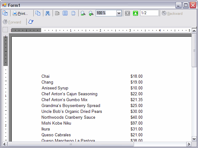 Control DataField Name Text Miscellaneous Location Textbox ProductName txtProductName Product Name Size = 2.9, 0.19 0, 0 Textbox UnitPrice txtUnitPrice Unit Price OutputFormat = Currency 3, 0 - Set the CanShrink property of the Detail section to True.