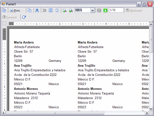 Field Text Location ContactName Contact Name 0, 0 CompanyName Company Name 0, 0.198 Address Address 0, 0.396 City City 0, 0.594 PostalCode Postal Code 0, 0.792 Country Country 1.5, 0.792