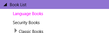 Markup Copy Code <Xaml:C1TreeViewItem Header="Language Books" Foreground="Fuchsia"/>
