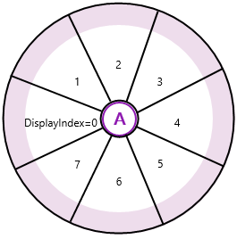 The C1RadialMenuItem.DisplayIndexProperty property uses zero-based indexing to define how the C1RadialMenuItems are displayed.
