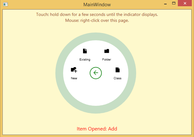 | WPF and Silverlight Edition Basic Library > RadialMenu > Quick Start: RadialMenu for WPF and Silverlight > Step 3: Using RadialMenu Control at Runtime |