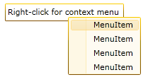 Because the C1ContextMenu control is always attached to another control using a service, adding a theme to the C1ContextMenu control is going to be slightly different than adding a theme to another Silverlight control. You will have to wrap the theme around a grid or a panel and then use the implicit style manager to ensure that the theme will be passed down to the C1ContextMenu control.