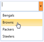 ComboBoxfor WPF and Silverlight incorporates several themes that allow you to customize the appearance of your control. When you first add a C1ComboBox control to the page, it appears similar to the following image: