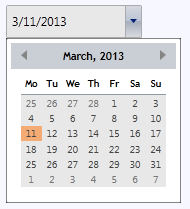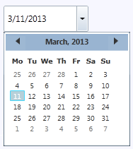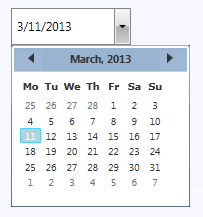 When you add the C1DatePicker control to your project, it appears with the default blue theme, which looks as follows: