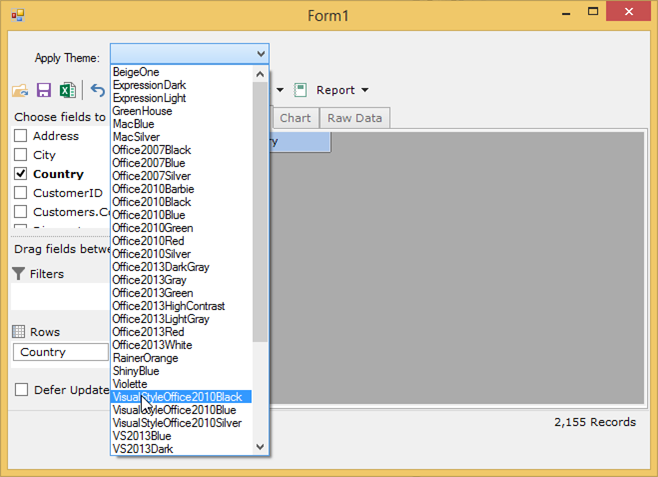 The overall appearance of FlexPivot controls can also be customized by applying themes through C1ThemeController. Developers can choose from a collection of predefined built-in themes to customize the control's overall appearance.