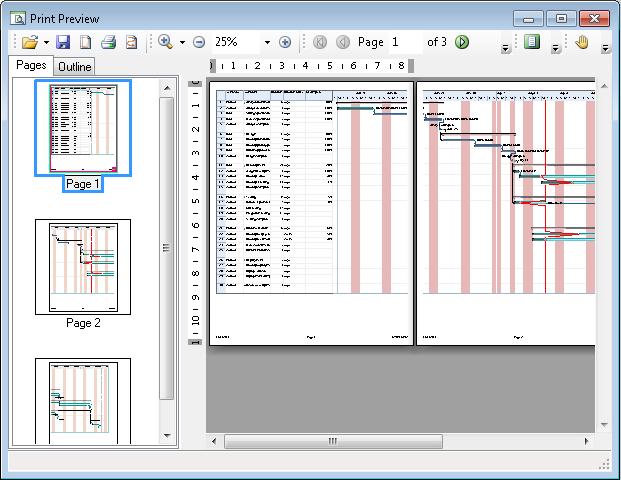 Click on the Print button in the GanttView toolbar and then click the Preview button from the Print dialog.
