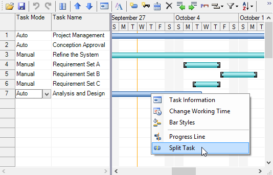 | GanttView for WinForms Task-Based Help > Splitting Tasks |