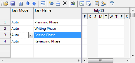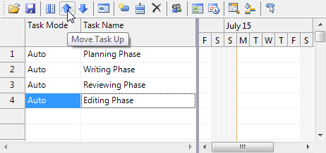 After clicking the Move Task Up button the Editing phase task is moved up one position.