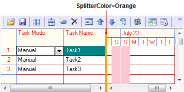 The following C1GanttView illustrates the SplitterColor property modified to Orange.