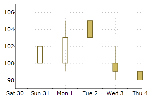 The following image represents the HighLowOpenClose chart when you set ChartType property to HighLowOpenClose and specifiy the data values for the XValuesSource, OpenValuesSource, CloseValuesSource, HighValuesSource, and LowValuesSource, like the following: