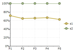 The following image represents the Line Stacked 100% chart when you set the ChartType property to LineStacked100pc: