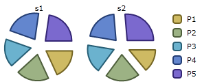 Pie charts have one significant difference when compared to other C1Chart chart types in Pie charts; each series represents one slice of the pie. Therefore, you will never have Pie charts with a single series (they would be just circles). In most cases, Pie charts have multiple series (one per slice) with a single data point in each series. C1Chart represents series with multiple data points as multiple pies within the chart.