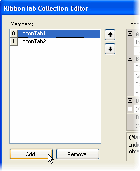 To add a tab to the Ribbon, you can use the smart designer, collection editor, or add code. Each option is described below. To learn how to add a contextual tab, see Adding a Contextual Tab to the Ribbon.