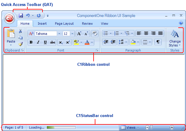 Complete with ComponentOne's Smart Designer support, Ribbon for WinForms's no-code design experience provides easy customization of the Quick Access Toolbar (QAT), tabs, groups, and other interface elements. With Ribbon for WinForms, creating Office 2007 Ribbon style menus is this easy.