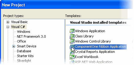 | Ribbon for WinForms Overview > Creating a Ribbon Application Project |