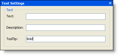 Optionally, you can set the RibbonItem.ToolTip property using the Properties window. Click the toggle button to reveal the item's properties in the Properties window. Locate the RibbonItem.ToolTip property and enter the ToolTip text in the box, for example, Bold.