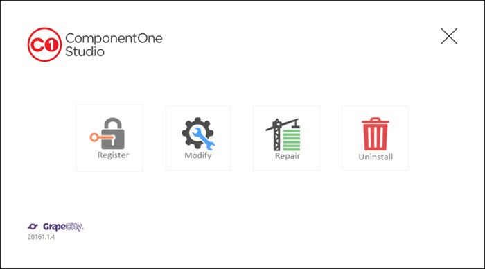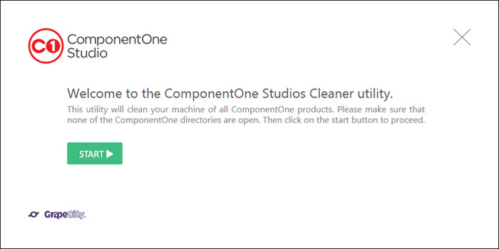 You can also use ComponentOne Studios Cleaner utility to clean your machine of all the ComponentOne products. All you need to do is download and run the ComponentOne Studios Cleaner utility, and click Start to clean all the registry entries and directories of ComponentOne Studio.