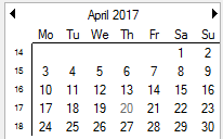 // add a disabled date c1CalendarView1.DisabledDates = new DateTime[] { new DateTime(2017, 3, 20, 0, 0, 0, 0) };