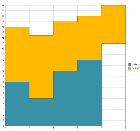 The following image represents the StepArea chart when you set the C1Chart.ChartType property to StepArea: