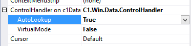 C1DataSource provides an extender property called ControlHandler. If you place a C1FlexGrid control on a form that contains a C1DataSource, the grid will get an additional ControlHandler property. A ControlHandler is an object containing (at present) a single boolean property AutoLookup. This property set to True causes the C1DataSource to configure grid columns that contain references to other entities so that they show lookup combos.