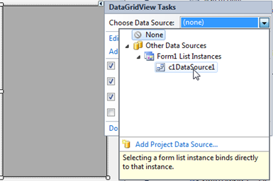 | Quick Start: C1DataSource for WinForms > Step 3: Adding a Grid |