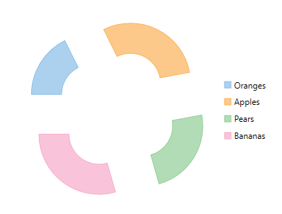 The Offset property can be used to push the pie slices away from the center of FlexPie, producing the exploded Pie Chart. This property accepts a double value to determine how far the pie slices should be pushed from the center.