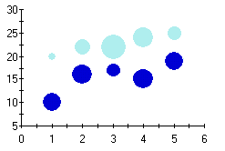 Bubble Chart: A Bubble chart combines two independent values to supply both the point y value and the point sizes. Bubble charts are used to represent an additional data value at each point by changing its size. The Y array elements determine the Cartesian position (as in a XY-Plot chart), and the Y1 element values determine the size of the bubble at each point. The size of the points can be encoded according to area or diameter.
