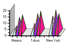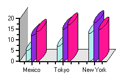 Bar and Column charts: A Bar chart or a Column chart represents each series in the form of bars of the same color and width, whose length is determined by its value. Each new series is plotted in the form of bars next to the bars of the preceding series. A Bar or Column chart draws each series as a bar in a cluster. The number of clusters is the number of points in the data. Each cluster displays the nth data point in each series. When the bars are arranged horizontally, the chart is called a bar chart and when the bars are arranged vertically, the chart is called column chart.