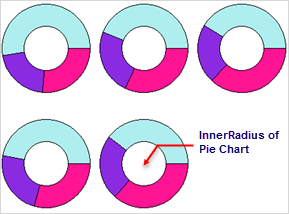 A doughnut chart can be created by setting the InnerRadius property of a pie chart to a non-zero value. The InnerRadius value represents the percentage of the full pie radius. The InnerRadius property can be accessed in the pie object of each Chart group.
