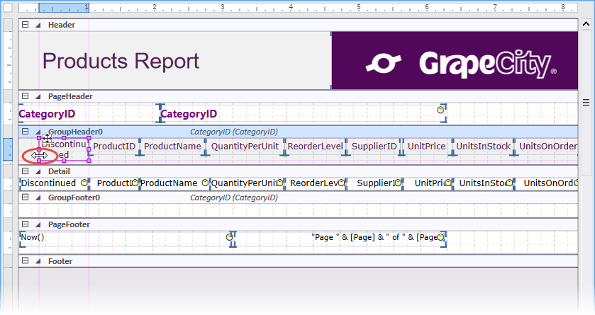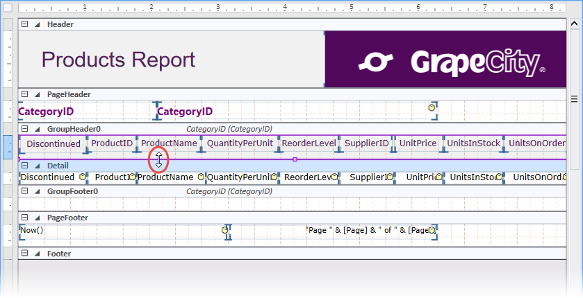 For this example, we will resize the Group Header section and fields as well as format a field value. To do this, complete the following steps: