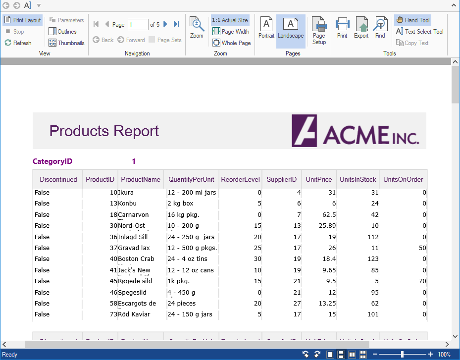 'load report definition c1FlexReport1.Load("..\..\Products Report.flxr", "Products Report") 'preview the report c1FlexViewer1.DocumentSource = c1FlexReport1