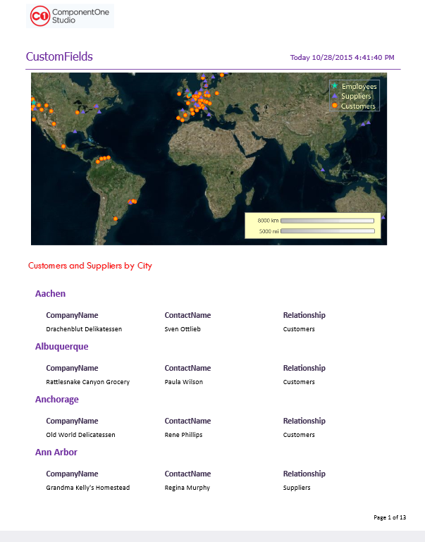 <html><body><font color="Red">Customers and Suppliers by City</font></body></html> |