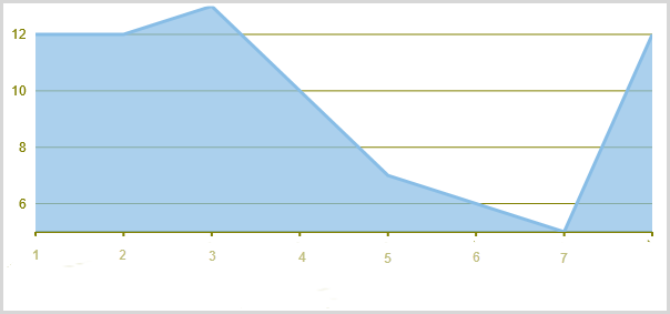 SplineArea chart: A SplineArea Chart is similar to an area chart. The only difference is that it connects data points using splines instead of straight lines and fills the area enclosed by the splines.