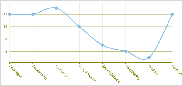 SplineSymbols: A SplineSymbols chart combines the Spline chart and the Scatter chart. The chart plots data points by using symbols and connects those data points by using splines.