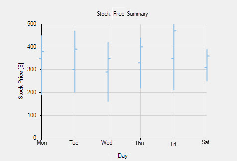 The HighLowOpenClose Chart is generally used in stock analysis. The chart combines four independent values to supply high, low, open, and close data values for each data point in a series.