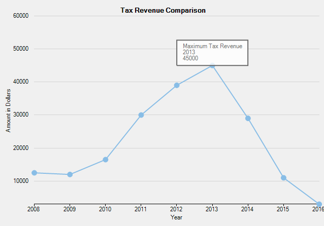 The following image displays the Rectangle annotation highlighting the maximum tax revenue in the year, 2013.