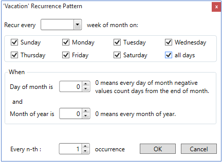 The following image shows how the Recurrence Pattern dialog appears at runtime: