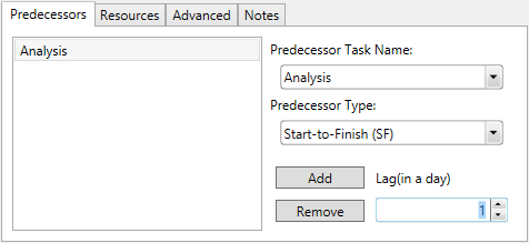| Predecessor Type | Specify the type of dependence from the drop-down list. |