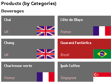 This section provides step-by-step instructions for binding a tile control to a database. You will bind C1TileControl to a collection of category data items to create a tile for each category. Each group of tiles will display the category’s name in its header.