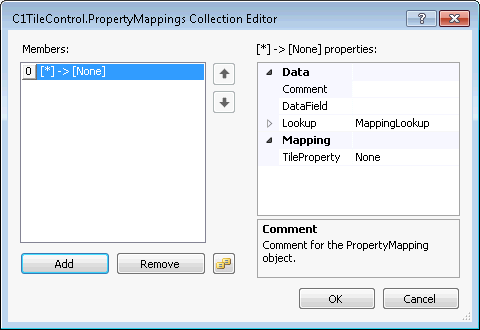 In this step you will create a PropertyMapping member to bind the ProductName and the ProductName’s text to the C1TileControl.